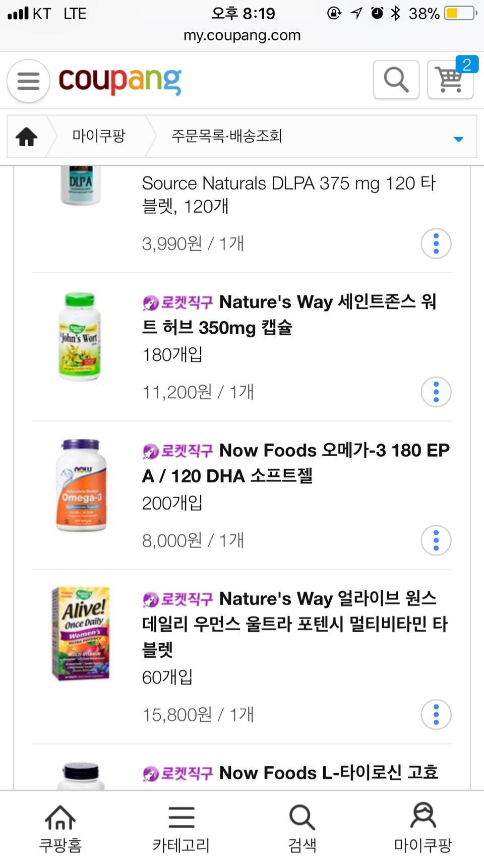 그리고 쿠팡직구로 뇌 영양제랑 멀티비타민을 샀어요