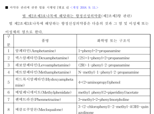 마약류 관리에 관한 법률이라는 법이 있습니다. 줄여서 마약류관리법.마약류관리법 제2조 제1호는 마약, 향정신성의약품, 대마를 모두 다 통틀어 "마약류"라고 부르며, 그 중 향정신성의약품은 제2조 제3호에 인간의 중추...